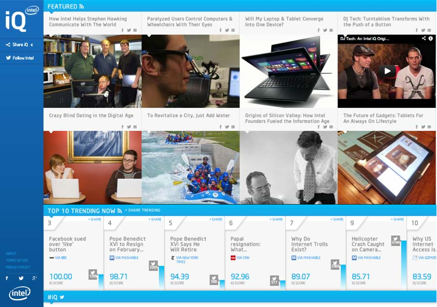 We helped devise the editorial strategy for iQ, a new publication from Intel that explored how technology is advancing the human endeavor. This included the creation of its Editorial Identity, as well as on-going work with Intel’s newsroom to program calendars and create original pieces.